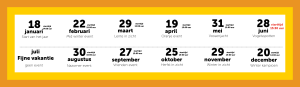 1X per maand, op zondag organiseren we een event.